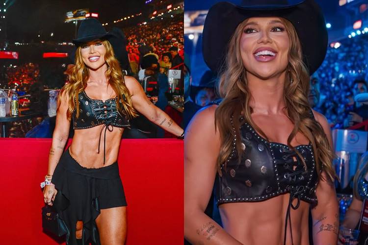De chapéu, com um saia bem curtinha e top mostrando a barriguinha sequinha, a apresentadora arrasou no look country. “Primeira vez em Barretos e sem comentários pra esse evento! Voltarei mais vezes”, disse a beldade.