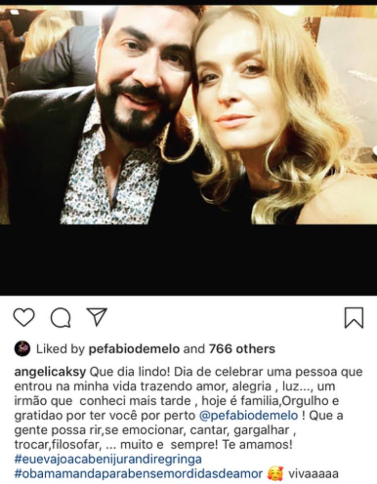 A apresentadora Angélica usou suas redes sociais para homenagear o aniversariante do dia, o padre Fábio de Melo, que está completando 48 anos neste dia (3).