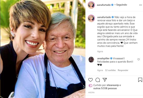 Nos comentário, Letícia Spiller aproveitou para parabenizar Boni. “Vivaaaaa!!! Felicidades para o querido Boni!!❤”, escreveu a atriz. Outros seguidores de Ana Furtado também desejaram felicidades. “Parabéns para seu sogro”, escreveu uma. “Linda foto… parabéns pra ele!!!”, elogiou outra. “Que linda homenagem, Ana! Que Deus abençoe o seu sogro! Você é maravilhosa demais e merece toda a alegria do mundo. Mulher magnífica! ❤”, escreveu mais um.