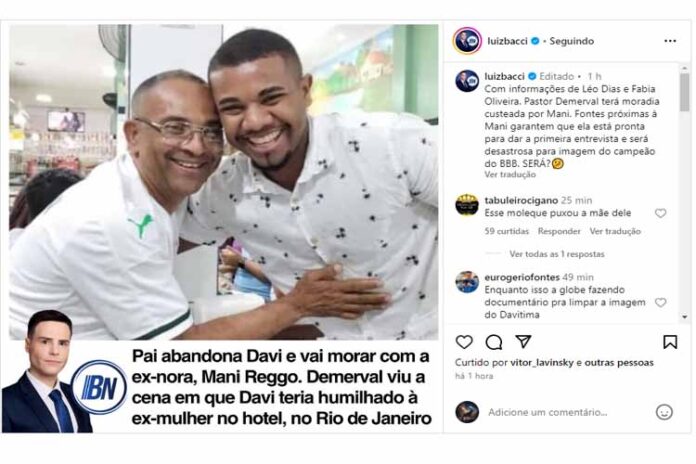 As informações foram compartilhadas pela coluna de Fabia Oliveira no Metrópoles. Segundo a fonte, o pastor Dermeval de Brito teria aparecido recentemente em uma foto ao lado de Davi, porém, estaria recebendo a ajuda de Reggo.
