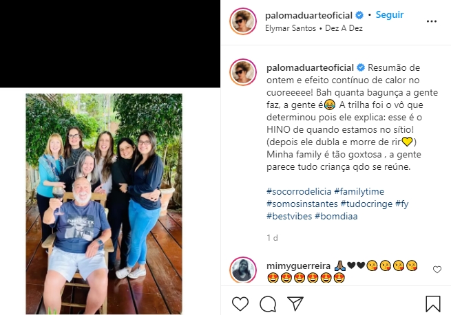Veja postagem abaixo de Paloma Duarte em família reunida: