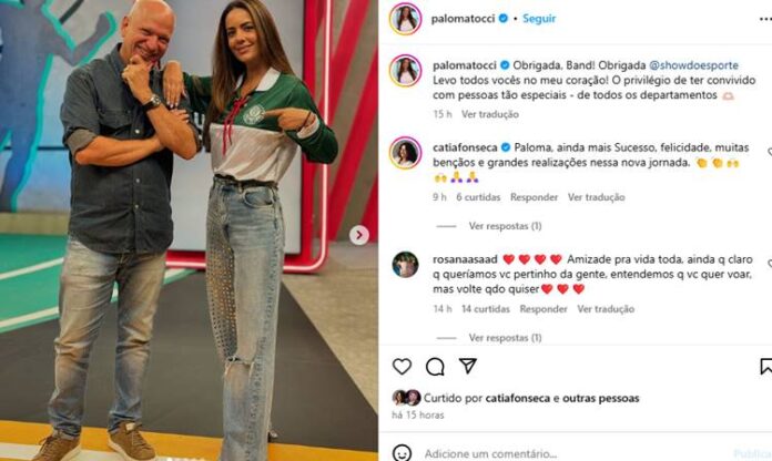 Pelas redes sociais, Paloma voltou a agradecer a emissora da família Saad e se despediu mais uma vez: “Obrigada, Band! Obrigada @showdoesporte. Levo todos vocês no meu coração! O privilégio de ter convivido com pessoas tão especiais – de todos os departamentos“, disse ela.