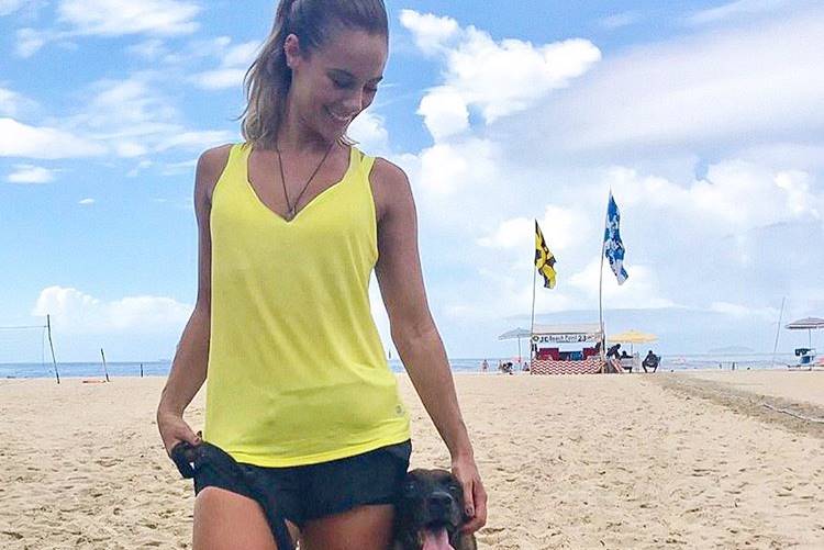 A atriz, que será uma das protagonistas da história, publicou em seu perfil do Instagram um registro dos bastidores das primeiras cenas, e apareceu na praia com roupa de malhação ao lado de um cachorro.