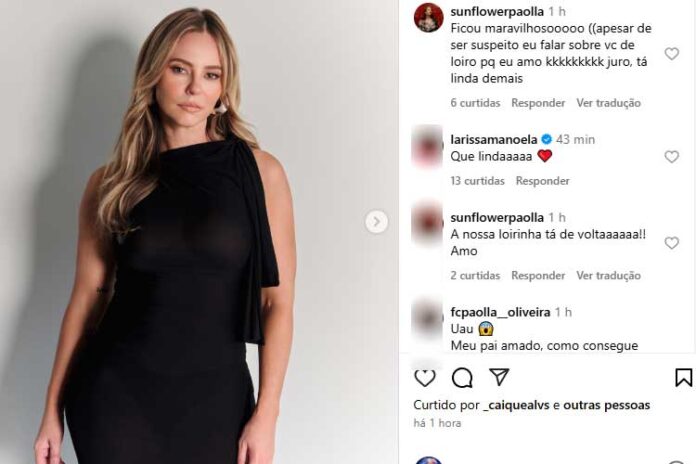 “Ela consegue ficar mais linda ainda!!! Eu amei!!!”, destacou uma internauta. “Ficou maravilhosooooo (apesar de ser suspeito eu falar sobre você de loiro porque eu amo kkkkkkkkk) juro, tá linda demais”, opinou outra. “Nossa loirinha está de volta”, completou mais uma fã nos comentários.