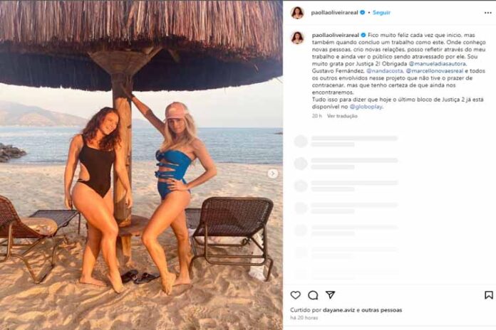 Na sequência, Paolla faz um agradecimento especial. “Obrigada @manueladiasautora, Gustavo Fernández, @nandacosta, @marcellonovaesreal e todos os outros envolvidos neste projeto com quem não tive o prazer de contracenar, mas tenho certeza de que ainda nos encontraremos”, completou, convidando o público para assistir à série.