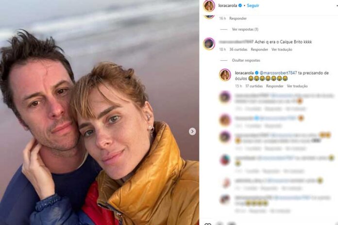 “Achei que era o Kayky Brito”, afirmou o seguidor. A famosa então respondeu, dizendo que ele estava, na realidade, precisando de óculos. “Tá precisando de óculos”, brincou. No post, Dieckmann se declara ao marido. “Se eu pudesse, transformava essa praia em infinito de lonjura pra seguir e de tempo pra ficar… com ele”, escreveu.