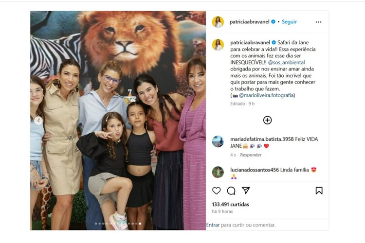 Em seu Instagram, a apresentadora e herdeira do SBT compartilhou fotos da celebração, mostrando que Jane e seus convidados puderam interagir com animais de verdade. Na legenda, Patrícia festejou a oportunidade.