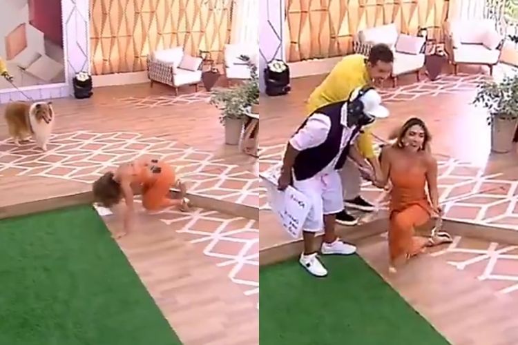 “Olha que lindo, acho lindo esse cachorro, acho super engraçadinho”, iniciou ela, que seguiu elogiando. “E faz muita coisa. Faz? Olha aqui no meio, vocês trouxeram um monte de brinquedinho”, dizia ela no momento em que tomou um tombo feio. Na hora, o também apresentador Gabriel Cartolano desabafou: “Meu Deus’. Assista o momento: