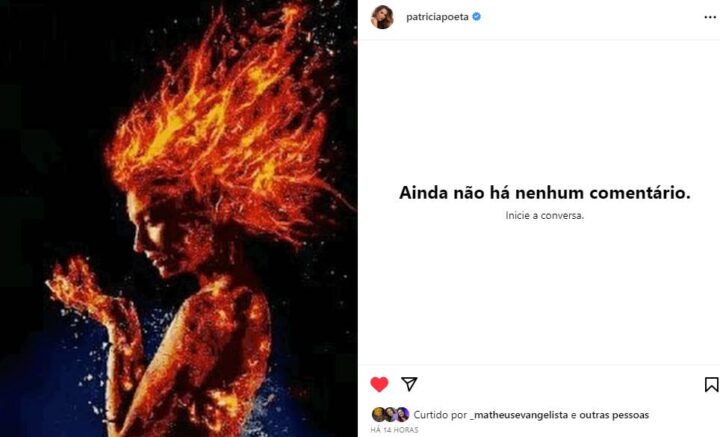 Dessa forma, no feed do Instagram, Patrícia Poeta compartilhou uma foto enigmática, aonde surge em ‘chamas’. No entanto, a apresentadora do ‘Encontro’ não chegou a legendar a publicação e muito menos explicou o motivo da postagem, até então. Aliás, ela ainda privou os comentários de suas publicações, deixando todos os seus seguidores sem entender o motivo.