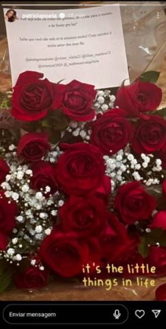 Dessa forma, por meio dos stories do Instagram, Patrícia Poeta compartilhou uma foto do presente que recebeu de seus mais fiéis fãs e, o mesmo, se tratava de um buquê de rosas, com uma linda mensagem: “Que você seja todo dia como um girassol, de costas para o escuro e de frente para a luz“, dizia o bilhete.