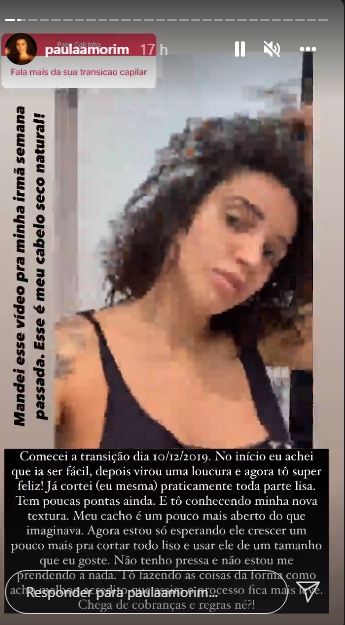 Paula Amorim recorreu as plataformas digitais para fazer um desabafo sobre sua transição capilar.