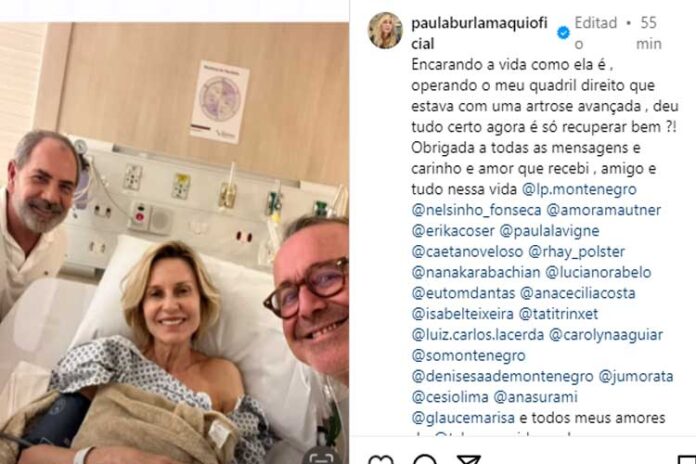 “Encarando a vida como ela é, operando o meu quadril direito que estava com uma artrose avançada. Deu tudo certo! Agora é só recuperar bem! Obrigada a todas as mensagens de carinho e amor que recebi”, agradeceu Paula na legenda.