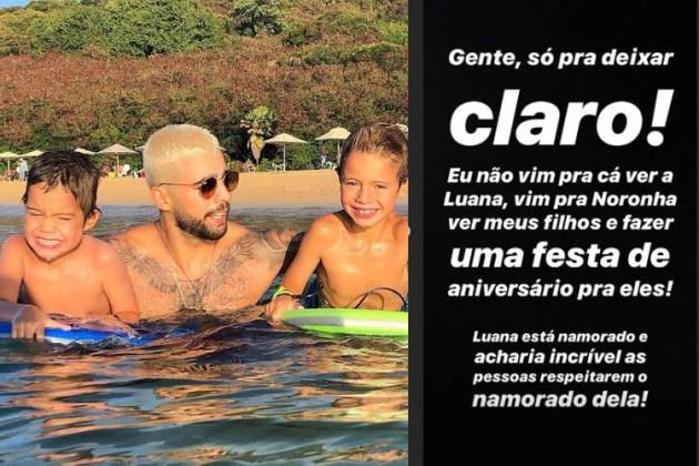Revoltado, Scooby resolveu esclarecer de uma vez por todas sobre o assunto, alegando que foi parar no local para celebrar a vida dos filhos gêmeos, Bem e Liz. “Gente, só pra deixar claro: Eu não vim pra cá ver a Luana, vim pra Noronha ver meus filhos e fazer uma festa de aniversário para eles!”, escreveu ele, em suas redes sociais.