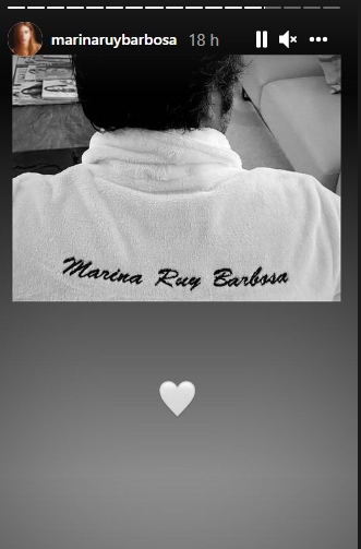 Mas nesta quarta-feira, 29, através de seu Instagram na ferramenta dos stories, Marina resolveu publicar uma imagem, em que o parlamentar surge um roupão com o nome da atriz. Esse é o primeiro relacionamento público da atriz desde o fim de seu casamento com Alexandre Negrão.