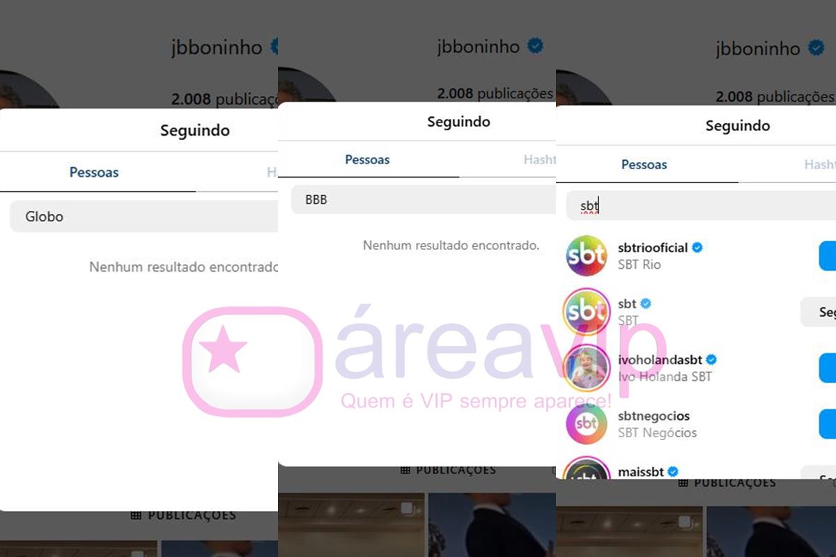Saindo da TV Globo, o diretor Boninho iniciou o processo de ‘detox’ e já deixou de seguir alguns perfis em seu Instagram oficial, a exemplo: TV Globo e ‘Big Brother Brasil’ (BBB). Para compensar, ele já passou a seguir nada mais e nada menos do que membros da família Abravanel, a exemplo de Daniela Beyruti e Patrícia.