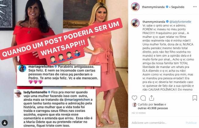 Se o comentário de Gretchen não pegou bem para Antonia, o da Antonia não pegou nada bem para Thammy Miranda que usou suas redes sociais para sair em defesa da sua mãe.