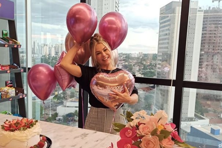 Na noite desta quarta-feira (11), a loira compartilhou com seguidores uma sequência de fotos onde mostrou um pouco da festividade. Ela mostrou alguns detalhes como bolo, decoração, balão, e docinhos.