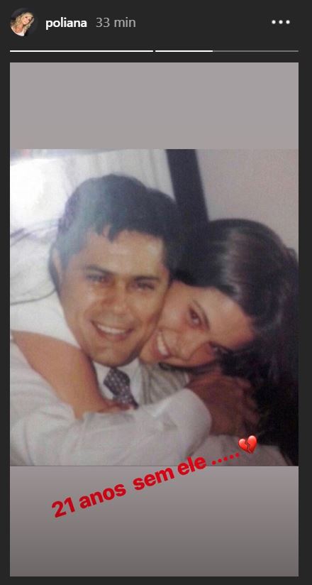 Nos stories da sua rede social, a jornalista Poliana, publicou uma antiga foto em que apareceu abraçadinha com o sertanejo e na foto ela escreveu: “21 anos sem ele…”, completou ela com um emotion de coração.