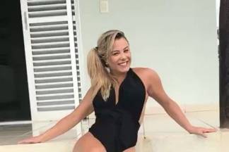 Uau! Poliana, mulher de Leonardo, posa na praia e renova o bronze