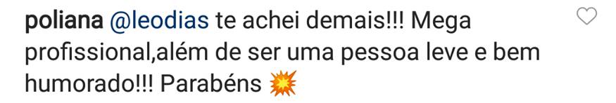 “Leo Dias te achei demais!!! Mega profissional, além de ser uma pessoa leve e bem humorado. Parabéns!!!”, disse ela.
