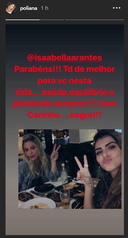 “@isabellaarantes Parabéns!!! Tudo de mulher para você nesta vida … saúde, equilíbrio e plenitude sempre!!! Com carinho … sogra!!!”, escreveu ela.