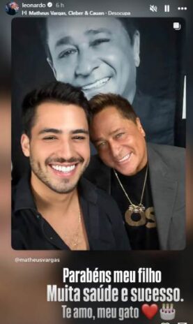 No final, o patriarca reforçou seu amor ao Matheus, reforçando que ele é seu gato: “Parabéns, meu filho. Muita saúde e sucesso. Te amo, meu gato”, escreveu Leonardo, na descrição da foto em que ambos aparecem muito sorridentes.