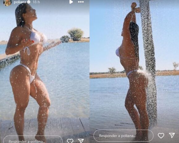 Em suma, nas imagens, Poliana surge na fazenda Talismã, tomando um delicioso banho de chuveiro após possivelmente curtir um banho de rio ou piscina. Aliás, membros da família estão reunidos por lá, devido ao aniversário de 61 anos do sertanejo Leonardo.