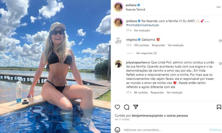 No entanto, nos comentários de sua publicação, Virgínia Fonseca logo reagiu: “Gatissima“, disse a nora da beldade. Outros internautas ainda apontaram: “As novinhas piram com tamanha beleza da Poli“, declarou. “Oh mulherão da gota, Leonardo se cuida que ela tá poderosa“, destacou mais uma.
