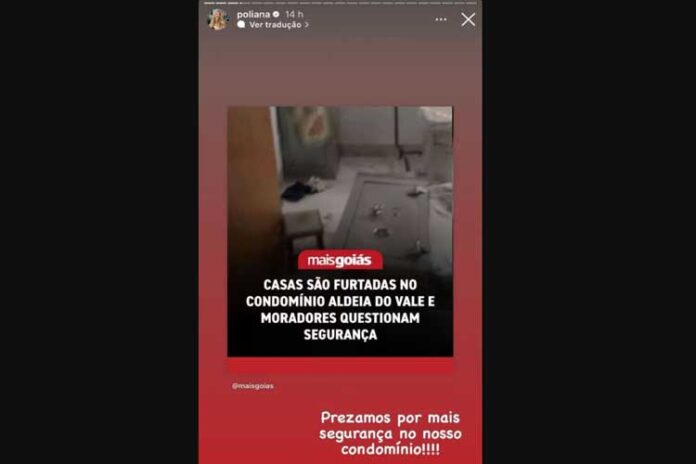 “Prezamos por mais segurança em nosso condomínio”, escreveu. De acordo com a notícia do Mais Goiás, duas residências do condomínio foram alvo de furto neste sábado (22).