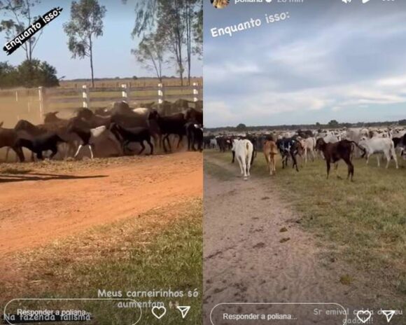 No stories seguinte, a esposa de Leo mostrou sua imensa criação de bovinos, confirmando que é a ‘rainha do gado’ de Goiânia: “Enquanto isso: Sr Emival cuida do meu gado“, disse ela, se referindo aos seus animais e marido, o sertanejo renomado Leonardo.