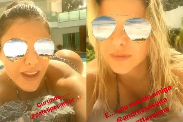 Já em outro, com os seus cabelos soltos, ela posou escutando o hit ‘Milu’, do sertanejo Gusttavo Lima, e aproveitou para tietar o artista e a esposa, a influencer Andressa Suita. “E… seu marido amiga”, disse na legenda do vídeo em que apareceu cantando o refrão do trabalho, ainda mencionando o user dos dois. Mais do que amigas, friends!