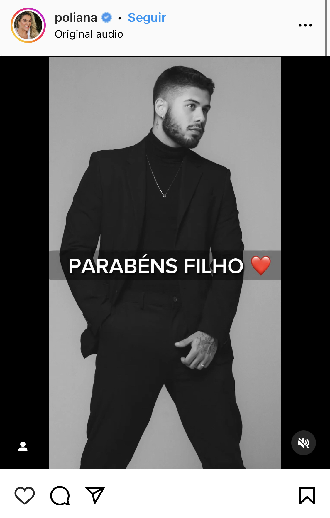 Logo em seguida, Poli encheu o seu filho com muitos elogios: “Sinto muito orgulho de ser sua mãe, seu coração é generoso, sua amorosidade infinita e sua compaixão pelo próximo ,me ENCANTA!!! Espero que o Senhor ilumine diariamente os seus caminhos, que saúde nunca lhe falte e que receba para sempre o melhor de Deus em sua vida. Você é um filho muito amado e tenho certeza que as mãos de Deus estão constantemente ao seu lado…..Parabéns”.