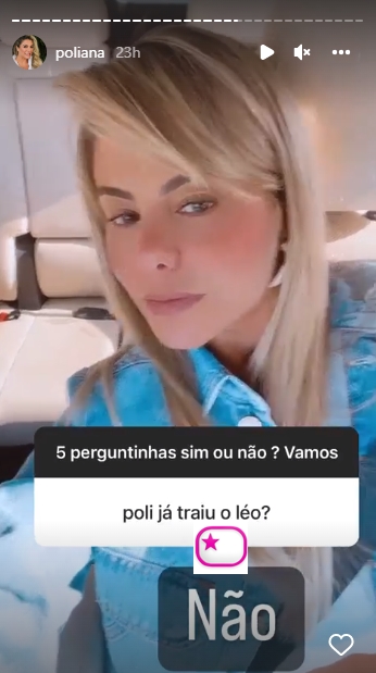 Dessa forma, por meio dos stories do Instagram, Poliana Rocha respondeu a curiosidade da fã, que lhe perguntou: “Poli já traiu o Leo?”, quis saber a curiosa. A jornalista e mãe do cantor Zé Felipe logo respondeu a seguidora e acabou de vez com o assunto, que vem repercutindo nas redes sociais.
