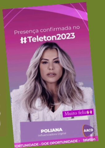 Dessa forma, por meio dos stories no Instagram, Poliana Rocha revelou a novidade e, claro, confirmou a sua presença no evento solidário que vai ao ar nos próximos dias 10 e 11 de novembro: “Muito feliz”, disse ela. Na sexta-feira, a maratona vai começar logo após ‘Cúmplices de um Resgate’ e seguirá até o ‘SBT News na TV’, das 22h30 até 01h30. No sábado, o Teleton tem início às 10h30, após o ‘Sábado Animado’, e segue até pouco depois da meia-noite de sábado para domingo.