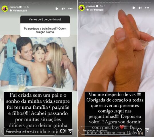 Através de sua conta oficial do Instagram Stories, a loira resolveu abrir uma caixinha de perguntas quando se deparou com o seguinte questionamento: ”Porque perdoou a traição, Poli? Quem trai não ama”, refletiu o internauta. Sendo assim, ela respondeu afirmando que estava tentando construir sua família, já que perdeu seu pai muito cedo.
