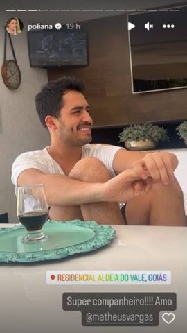 Dessa forma, através dos stories do Instagram, Poliana Rocha compartilhou um registro de Matheus Vargas em sua residência e, na legenda, ela afirmou: “Super companheiro!!! Amo @matheusvargas“, declarou ela, que é mãe do cantor Zé Felipe, único filho com o sertanejo Leonardo.