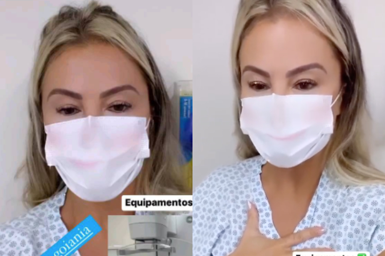 A empresária iniciou a gravação avisando que iria fazer mamografia, exame radiológico feito nas mamas. “Gente, eu já tô aqui preparadinha pra fazer o exame de mamografia aqui no Hospital Albert Einstein, em Goiânia”, disse ela, no Instagram.