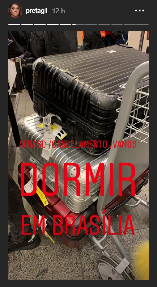 Em seus stories do Instagram, Preta se mostrou cansada com a situação, e, ainda, disse que teria que dormir, para embarcar só no próximo dia, devido à um atraso e logo em seguida, um cancelamento de sua viagem. Na manhã desta terça-feira (27) ela postou uma foto, em que aparece ainda tentando embarcar.