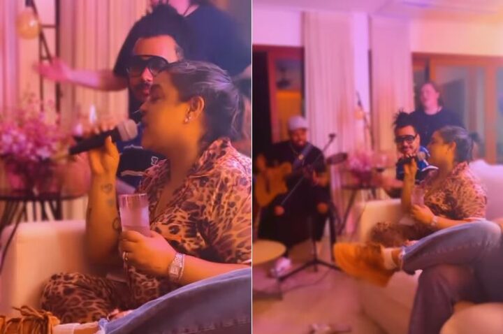 Em imagens que estão circulando pela internet a famosa aparece cantando ao lado dos colegas em clima de descontração e muita alegria. No vídeo é possível observar alguns famosos, entre eles: Carolina Dieckman, Pabllo Vittar, Fernanda Paes Leme, Gominho, Gabi Melim.