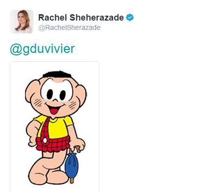 Rachel rebateu o post do ator, publicando outro meme da Turma da Mônica, porém logo foi detonada por internautas que diziam que a âncora do telejornal “SBT Brasil”, não sabia utilizar memes.