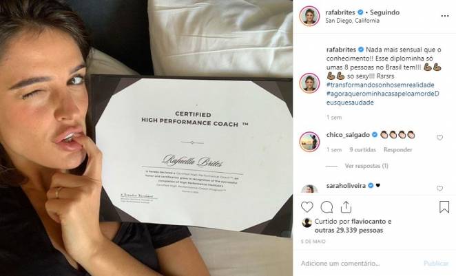 Rafa Brites usou suas redes sociais para fazer um esclarecimento aos seus seguidores. Nos últimos dias ela acabou recebendo várias críticas após publicar um diploma de coach que recebeu nos Estados Unidos, após fazer um curso. Na ocasião do post ela ressaltou o qual raro era o documento.