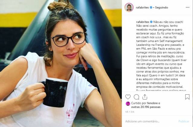 Entre os comentários que Rafa recebeu, estavam de pessoas falando mal ou até ironizando a profissão de coach. Ela não gostou do que leu e escreveu um texto mandando um recado aos haters, avisando, inclusive, que não pretende seguir essa área.