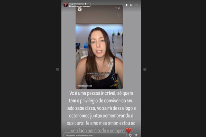 Rafa deixou claro que toda a família está unida e apoiando Fabiana durante este difícil momento. Ainda destacou que a irmã é uma pessoa muito forte e que, com certeza, conseguirá superar isso com saúde.