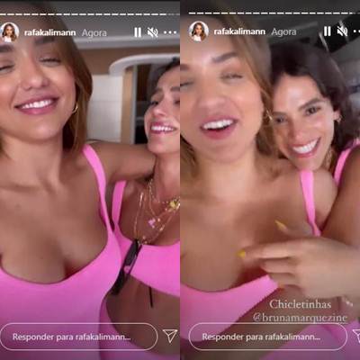 Os rumores de que Bruna Marquezine não suportaria Rafa Kalimann ainda estão dando o que falar nas mídias. Mas as protagonistas das fofocas parece que estão rindo da historinha. No stories do Instagram, a ex-BBB surgiu em um vídeo nesta quinta-feira (31) ao lado da atriz fazendo piada com a notícia de que não se dão bem. As duas, que estão passando as festas de fim de ano em uma ilha, apareceram com a roupa de banho rosa, se abraçaram e riram um pouco, fazendo pouco dos boatos.