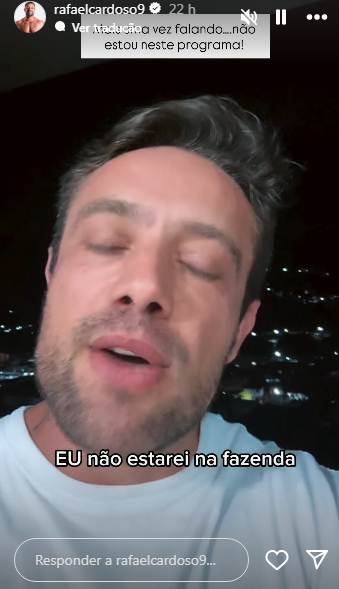 O ator ainda fez questão de dizer que não é contra ao programa. “Nada contra o programa, nada contra a emissora, nada contra ninguém. Só não é da minha vontade. Então colocando aí e usando a imagem há muito tempo para ficar colocando. Enfim, faz parte. Fake news faz parte. Então deixando aqui bem claro que não é verdade. Não participarei do programa A Fazenda”, finalizou.