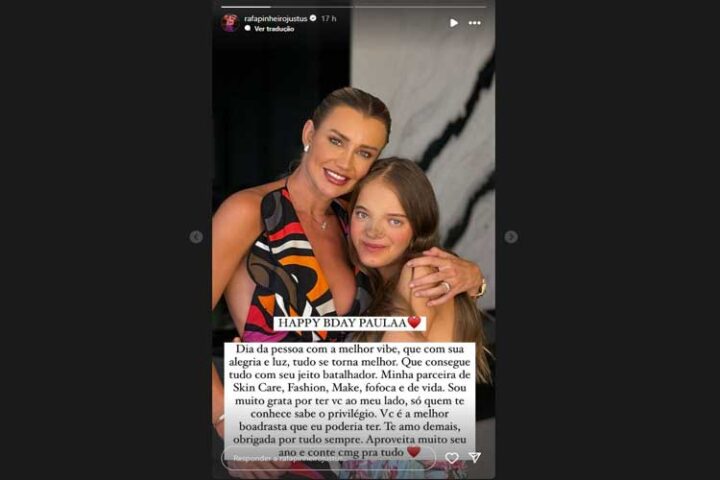 Na sequência, a herdeira de Justus destacou o quanto a madrasta é uma mulher batalhadora, agradecendo pelo carinho. “Que consegue tudo com seu jeito batalhador. Sou muito grata por ter você ao meu lado, só quem conhece sabe o privilégio. Você é a melhor madrasta que eu poderia ter. Te amo demais, obrigada por tudo sempre. Aproveita muito o seu ano e conte comigo para tudo”, desejou.