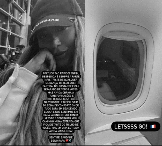 Em suma, na sequência dos stories, Rafaella Santos publicou uma foto da janela do avião, onde indicava seu desembarque na França. Além disso, vale lembrar que, Rafa chegou a namorar por muitos anos o jogador do Flamengo, Gabigol.