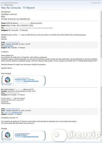 “Vazou q fui convidado p/ ir p/ FAZENDA. Aqui tá nossa troca de e-mails”, escreveu Rafinha. Confira: