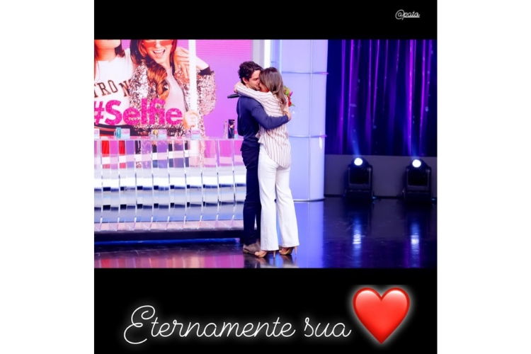 Rebeca Abravanel, que está namorando o jogador de futebol do São Paulo, Alexandre Pato, compartilhou na ferramenta stories de seu Instagram, uma foto romântica ao lado do amado e, na legenda, se derreteu por ele: “Eternamente sua“, finalizando com um coração.