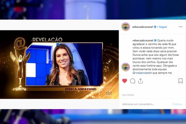 Dentre os comentários, inúmeros internautas e colegas de Rebeca comemoraram a estatueta com ela. “Você merece”, escreveu a apresentadora Ticiane Pinheiro. “Parabéns por mais essa conquista! Viva Rebs”, comemorou sua irmã e também apresentadora, Patrícia Abravanel. “Puro mérito, sua antenticona”, parabenizou a humorista Marlei Cevada, a Nina do ‘A Praça é Nossa’.